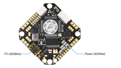 There are 2 LEDs on the bottom of the board to indicate the status, including the Power LED ( Red), FC LED(Blue).
