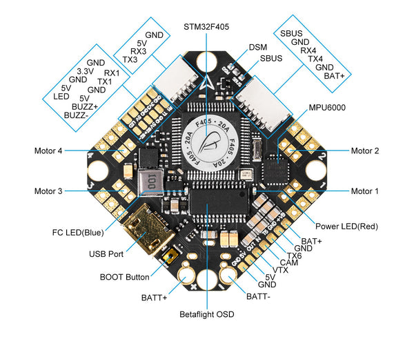 新的飞控具有用于外部Rx的即插即用端口,并且包装中将有一个用于Rx的4针连接器,飞行员可以减少焊接工作量,易于安装。 另外,请注意,当您连接不同的外部Rx时,针脚附近的焊盘需要焊接,如下图所示。